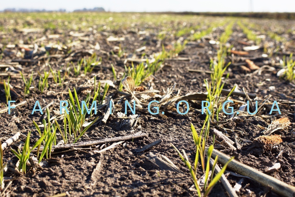 Photo © Dr. Oleksii OrlovWhen sowing winter wheat (winter barley, triticale or rye) in the autumn - it is not profitable to apply nitrogen fertilizers to the rows - it is a waste of money! At the photo - late germination of winter wheat after sunflower in a temperate climate (dry, cold continental climate)