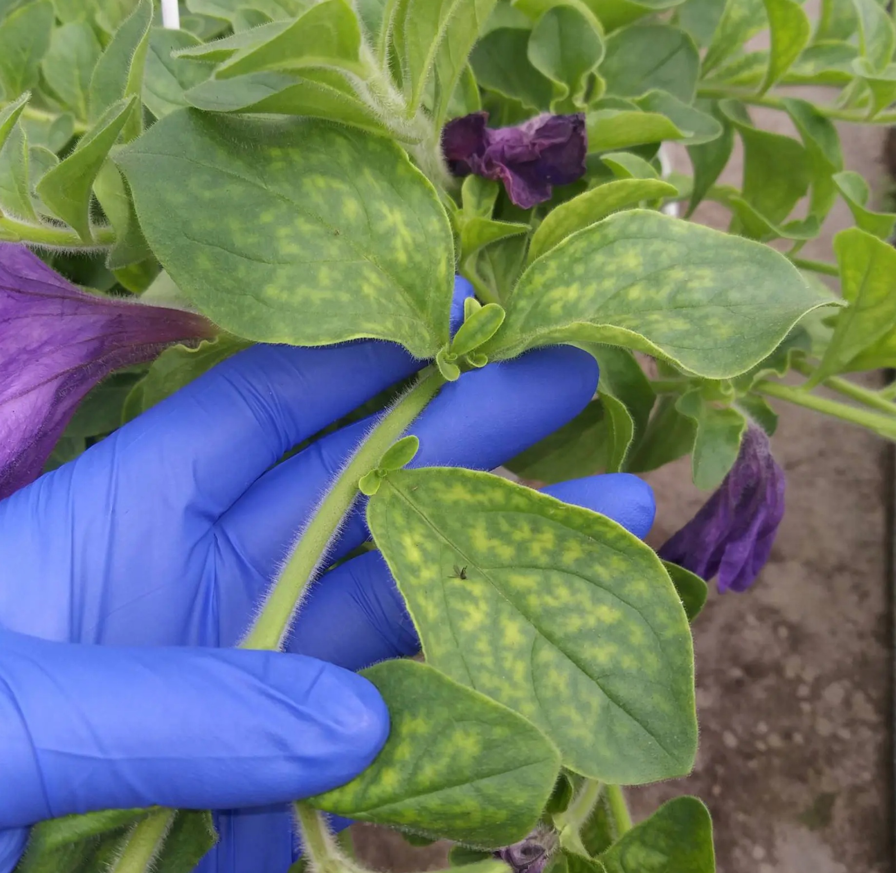 вирус тобачной мозаики на петунии TMV (на фото).